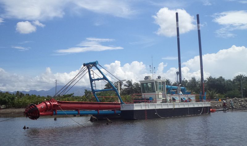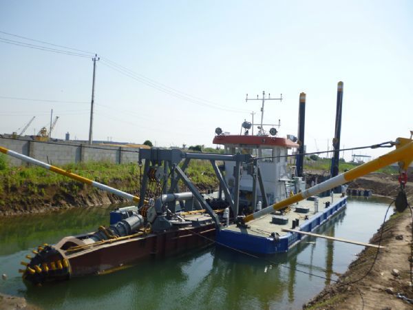 絞吸式抽沙船的工作效率高,而且可以對中、低硬度的巖層進行破壞,從而更適合高難度的河沙提取。但是絞吸式抽沙船的造價就相對較高,而且不如挖沙船那樣運動自如。絞吸式抽沙船依靠駁船的牽引到達目的地后,必須依靠船錨進行固定。但是絞吸式抽沙船大大的增強了抽沙深度,可以可以進行河道的清淤,航道的疏通,以及人工島的吹填等大型高難度工作。
