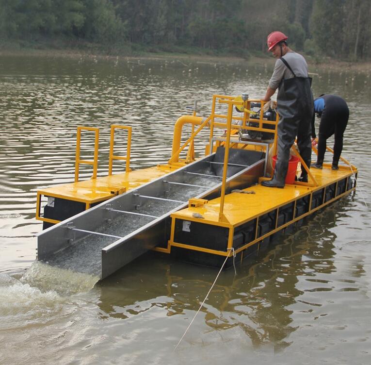 我們所有的淘金船都是根據客戶需求并在科技的輔助下設計出來的,淘金船都鋪有新型選金墊以好的回收率的黃金回收。對于比較有經驗的淘金者,往往要求攜帶方便、效果突出,所以這種淘金船是理想的設備。漂浮系統可以在多種條件下操作,包括水深水急條件下。可以根據您的需要和預算給您配備相應的發動機和空壓機。這是一種多功能的5寸淘金船,由兩臺6.5Honda發動機驅動,這種小的發動機能夠比較容易地被運送到偏遠地區,這種小而強大的發動機也可以應用于其他的設備,如更高的工作臺和更小的淘金船。這種姊妹式發動機配置近幾年來一直很流行,