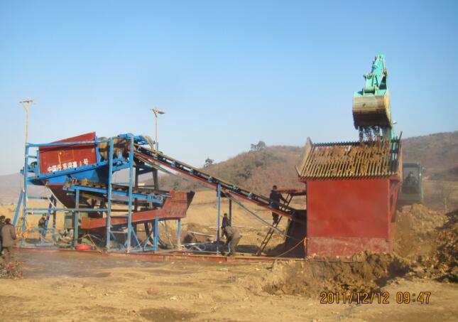 選礦機(jī)干枯河道河床選金設(shè)備產(chǎn)量在國(guó)內(nèi)外的很多沙金礦區(qū)中多是遠(yuǎn)古時(shí)期地殼運(yùn)動(dòng)所留下的干枯的河道,河床,往往沙金的含量是比較高的,這都是有根據(jù)的.在干枯河道中選金,往往含廢料比較多,像是費(fèi)石子,有的還有樹根的其他雜物含量也是比較多.這樣在選礦的時(shí)候設(shè)備一定要選擇好.可以采用挖掘機(jī)或鏟車上料,如果還有水的話也可以采用抽沙泵上料進(jìn)入沙金提取設(shè)備. 挖掘機(jī)或鏟車上料至選金設(shè)備料斗,振動(dòng)料斗振動(dòng)均勻下料至滾筒洗礦分離篩,進(jìn)行篩分,將礦中所含有的石子,或樹根等其他廢料篩分出去,含金的礦料經(jīng)過滾筒洗礦分離篩的篩分沖洗進(jìn)入選金槽或者離心機(jī)或魯晟機(jī)械所研制的新型跳汰機(jī)進(jìn)行選金,金子和重沙留在里面,沙子就排走了.魯晟機(jī)械制造的河道河床選金設(shè)備出口了多個(gè)地區(qū),有移動(dòng)式的有振動(dòng)式的多種,受到礦老板們的一致好評(píng).